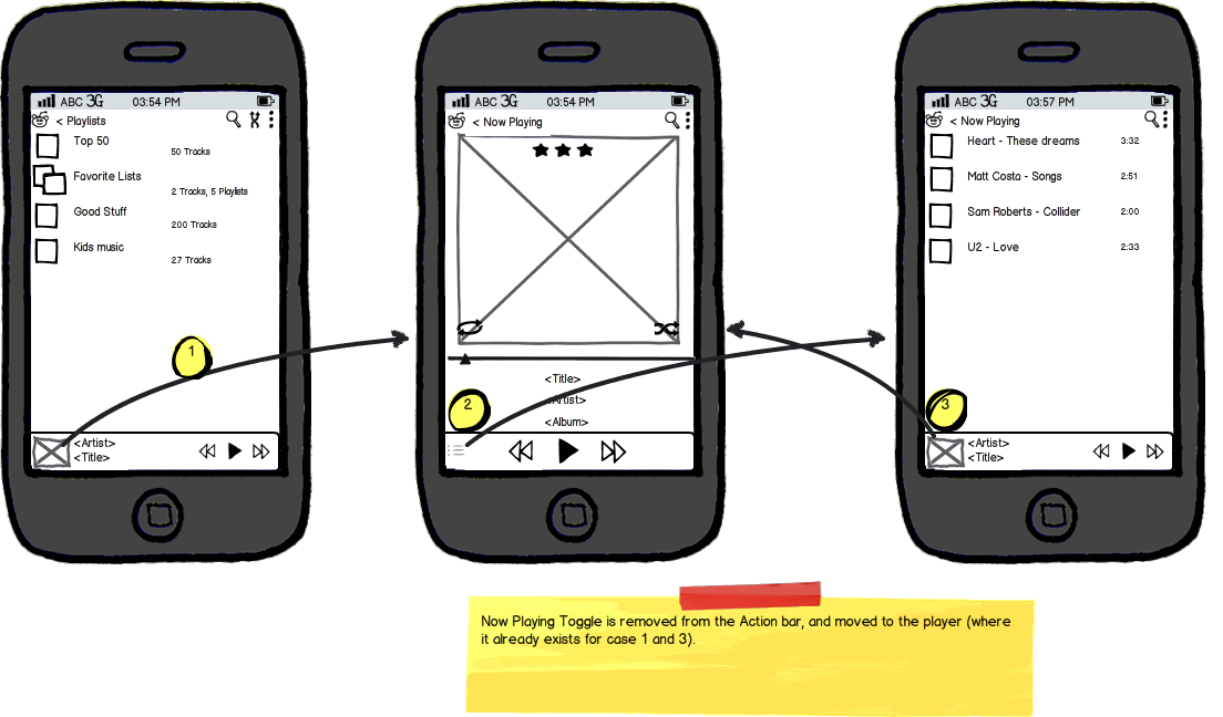 | Description | As of build 28, the toggle is functioning well, however, there are 2 elements of the current design that can be improved upon: i) The user initially toggles to NP via the miniplayer, but has to subsequently toggle between NP views via the action bar which is at a different location. ii) It's generally preferable for more commonly used functions to be towards the bottom of the UI, and the current toggle is at the top. One way of dealing with both of the above would be to move the toggle from the action bar to the player. So: -User would click the Artwork in the miniplayer to get to the NP view -User would click a 'Playlist' button at the leftmost margin of the miniplayer to switch to the NP>Playlist view -User would click the Artwork in the miniplayer to switch back to the NP>Artwork view. This has the additional benefit of removing a menu item from the Action bar. The only downside is that the Player bar menu for the NP>Artwork view won't have a 'balancing' entry on the right side, however, this can be migigated by making this menu item grey. Thoughts? | ||||